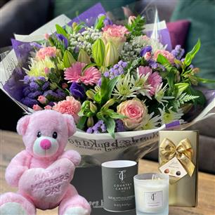 Celebrate Mother's Day with our beautifully curated collection. Featuring our Contry Meadow Range in soft, pastel palette and three charming designs, these gifts are the perfect way to show your love and appreciation. Choose the ideal piece to brighten her special day. Our beloved Caledonia Collection, a year-round customer favorite, is now part of our special Mother's Day selection. This stunning Scottish range has consistently been a top choice, and we know your Mum will adore its timeless charm and quality craftsmanship. Give her the gift of a proven favorite. Our Vibranty collection is a celebration of colour, featuring a luxurious hand-tied bouquet, a charming basket arrangement, and a stylish zinc tin display. Each piece is brimming with bold, bright hues, guaranteed to bring a smile to your mums face. Or surprise Mum with the sweetness of pink this Mother's Day. Our range of pretty pink designs includes a beautiful hand-tied bouquet, a charming petite hatbox, and a luxurious rug. These lovely pastel pinks are a classic Mother's Day choice, guaranteed to delight.