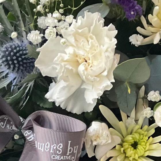 Bring a touch of Caledonia to any home with this convenient box arrangement. Featuring iconic thistles alongside large-headed roses, carnations, and other beautiful blooms, this all-round design requires no vase, making it a perfect, hassle-free gift. A beloved pick from our Scottish Range, this arrangement is easy to care for – just keep the box watered