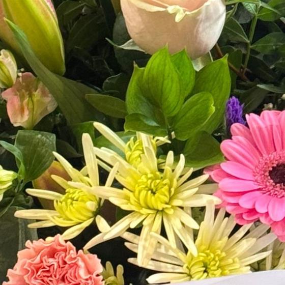 Including Germini, Carnations, Alstromeria, Delianne, Lily Gypsophila and Roses.