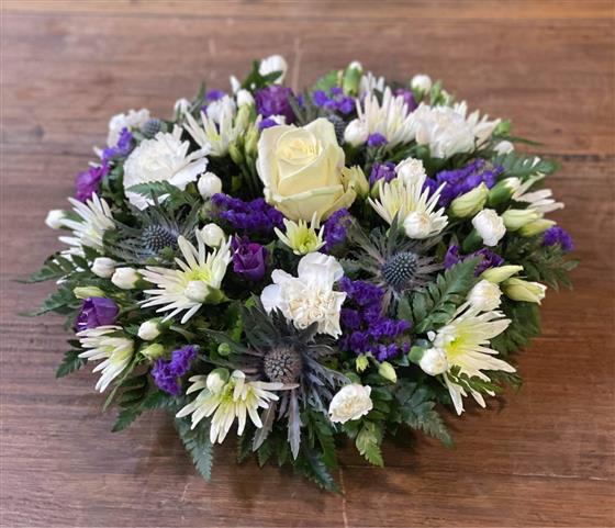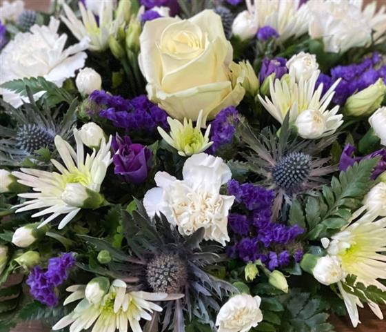 A lovely scottish themed posy, in Whites and Purple Tones.