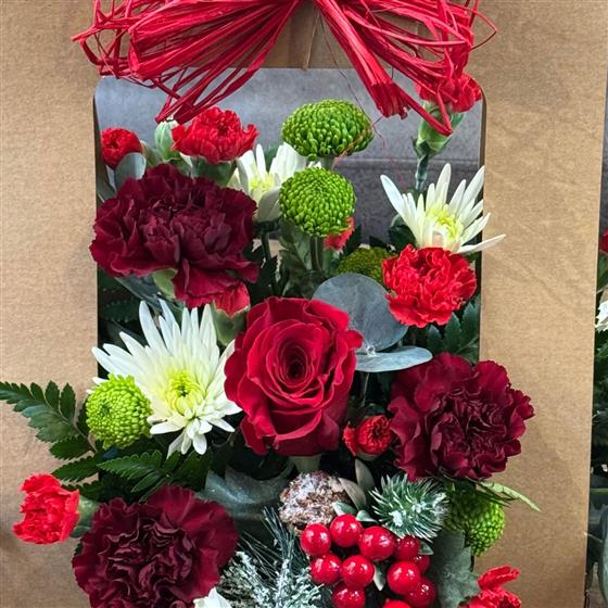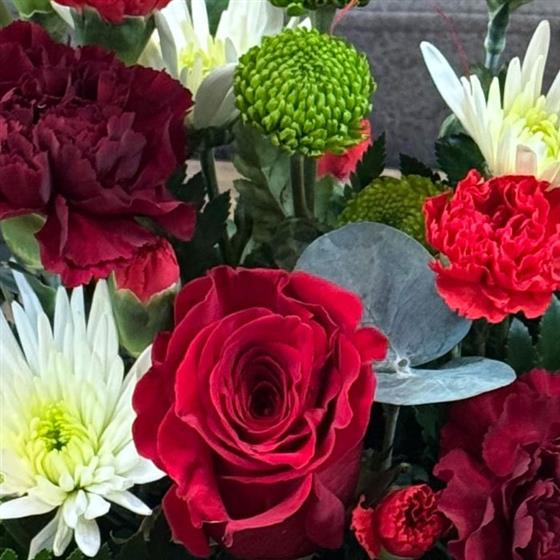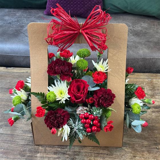 By popular demand, we’ve given our best-selling "Living Card" design a festive makeover! This beautiful arrangement is crafted using a classic Christmas palette of rich reds, deep greens, and creamy whites, creating an instantly eye-catching holiday display. True to its roots, it remains the hassle-free and easy gift solution—delivered ready for instant enjoyment.