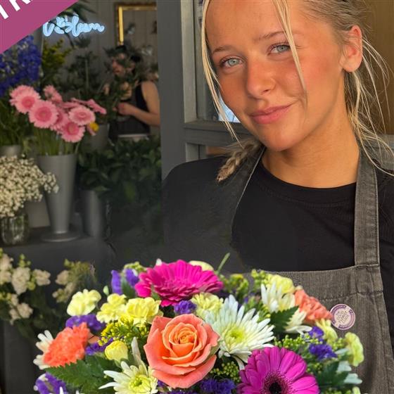 Our trainee florist, Natasha, is creating some lovely work supervised by our senior florists. If you order this product it will be a bespoke design every time.