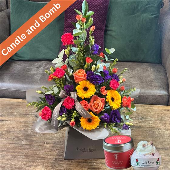 VIBRANT ARRANGEMENT WITH CANDLE AND BATHBOMB