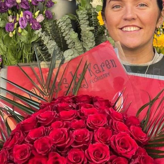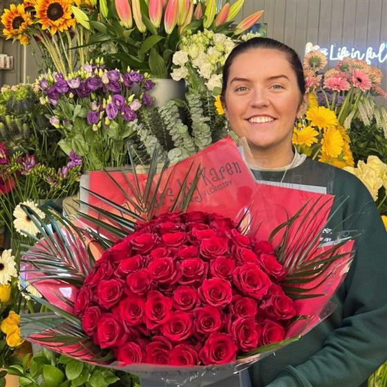 WOW. 50 Stunning Explorer Roses, expertly hand tied and wrapped in cellophane, A valentines gift they'll never forget. ❤️